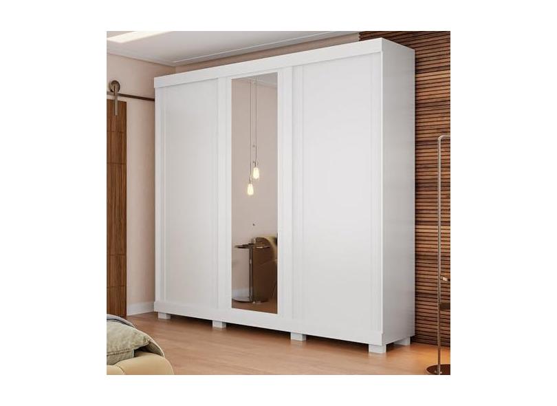 O menor preço encontrado no Brasil para Guarda-roupa Casal 243cm 3 Portas de Correr com Espelho 100% Mdf Amarílis Espresso Móveis Branco atualmente é R$ 2.577,77.