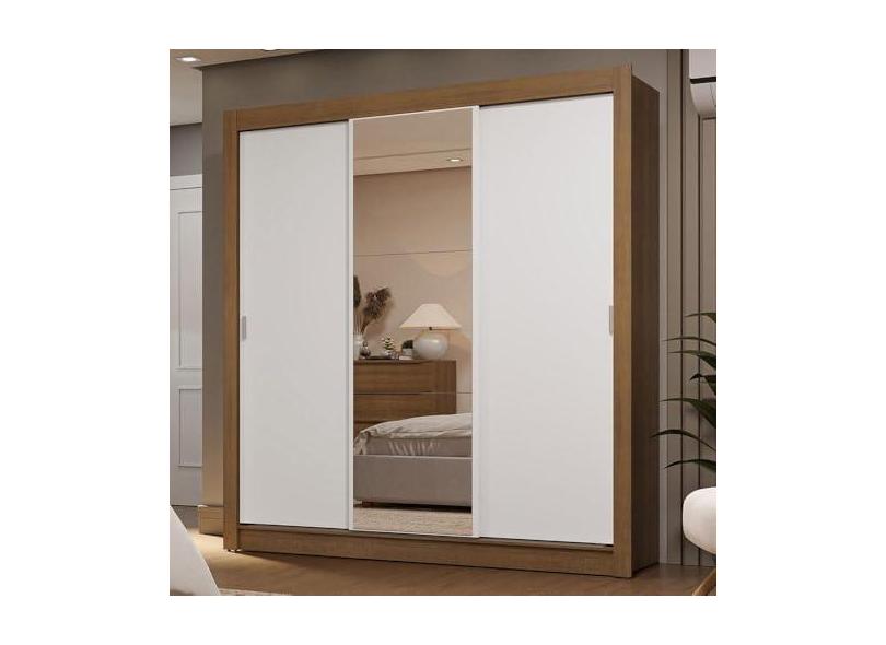 Guarda-roupa Casal 3 Portas de Correr com Espelho 2 Gavetas Rustic/branco Sublime Madesa