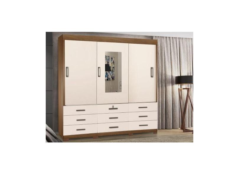 Guarda Roupa Casal 3 Portas de Correr com espelho 9 gavetas Itapema M