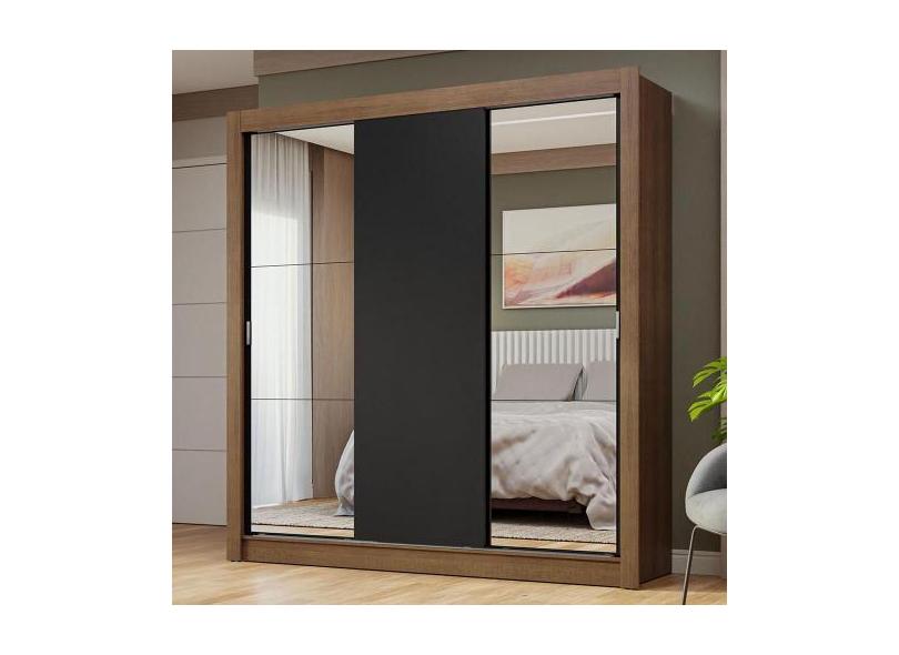 Guarda-Roupa Casal 3 Portas De Correr Com Espelhos Rustic/Preto Nobre