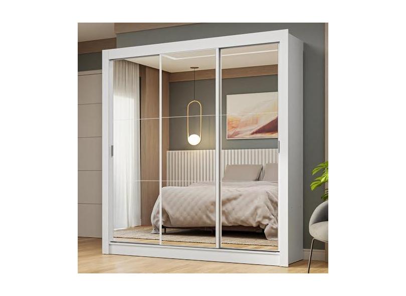 O menor preço encontrado no Brasil para Guarda-roupa Casal 3 Portas de Correr de Espelho Branco Nobre Madesa atualmente é R$ 1.133,99.