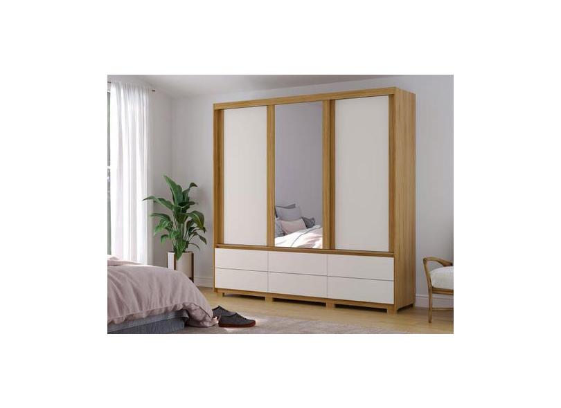 Guarda-Roupa Casal 3 Portas Desliz C/ Espelho E Pés Liz Camaru/Perola