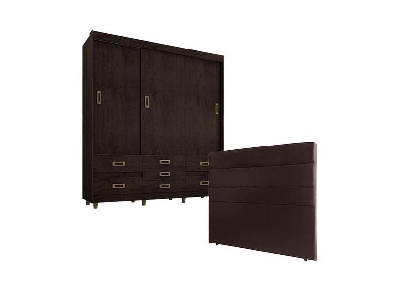 Guarda Roupa Casal 37020 Café Baunilha E Cabeceira Bia 195 Cm Marrom M