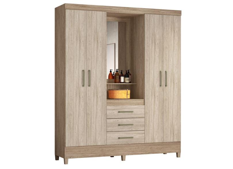 Guarda Roupa Casal 4 Portas Pés E Espelho Capelinha Pérsia