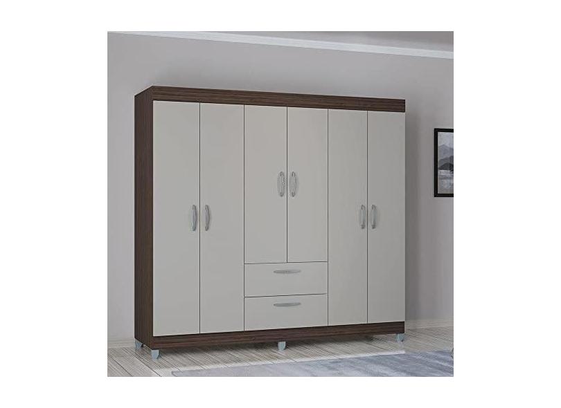 Guarda Roupa Casal 6 Porta 2 Gavetas Tóquio Poquema Móveis Chocolate/offwhite