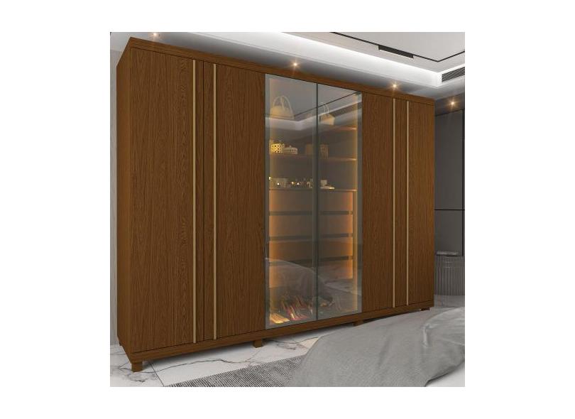 Guarda Roupa Casal 6 Portas 4 Gavetas Com Vidro Reflecta E Led Absolut