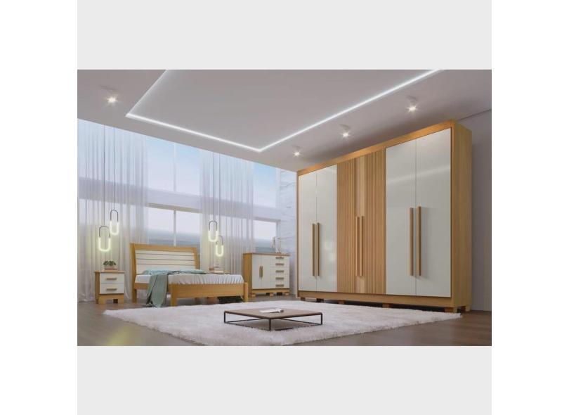 Guarda Roupa Casal 6 Portas 7 Gavetas - Athos Ripado-Cinamomo/Off White - Móveis D'Doro
