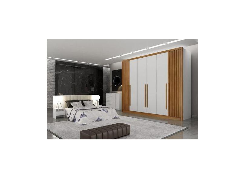 Guarda Roupa Casal 6 Portas 8 Gavetas - Maldivas Ripado-Branco - Móvei