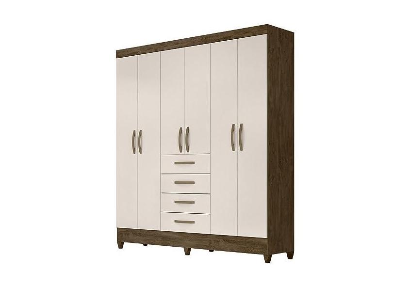 Guarda Roupa Casal 6 Portas 8963 Castanho Wood Off White Moval