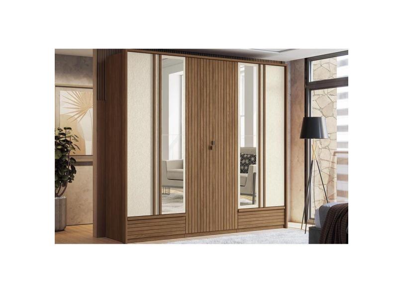 Guarda Roupa Casal 6 Portas E 5 Gavetas C/ Espelho Democrata Jatoba/Areia - Santos Andirá