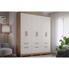 Guarda Roupa Casal 6 Portas e 5 Gavetas Porto Cinamomo/Off White - Panan