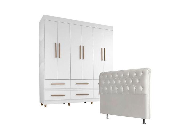 Guarda Roupa Casal 66020 E Cabeceira Emília 195 Cm Branco - Araplac