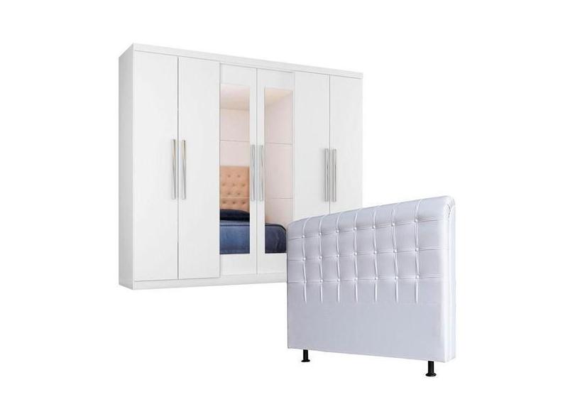 Guarda Roupa Casal 7000 E Cabeceira Ana 195 Cm Branco - Araplac