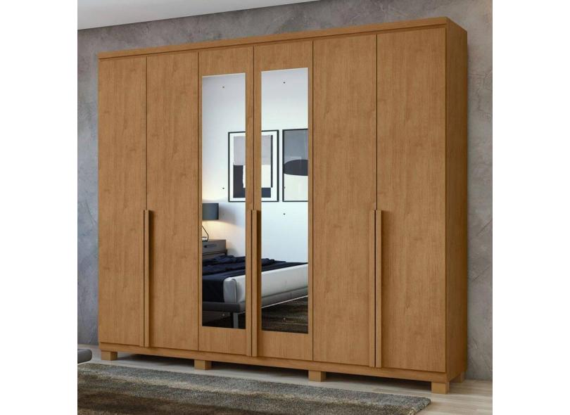 Guarda-Roupa Casal Alonzo 6 Portas 4 Gavetas com Espelho 100% Mdf 59944.3 Amêndoa Clean - Móveis Lopas