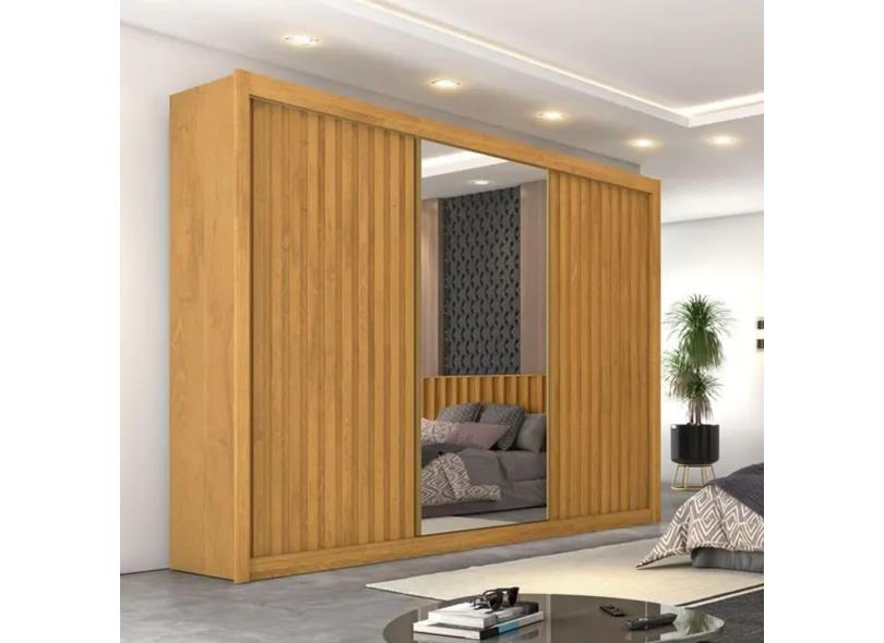 Guarda Roupa Casal com 3 Portas de Correr e Espelho Central - Ravena-Peroba - Móveis Europa