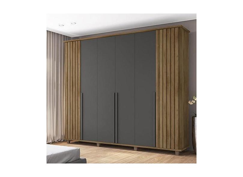 Guarda Roupa Casal com Detalhe em Ripado 6 Portas 3 Gavetas Internas França Cinamomo/grafite