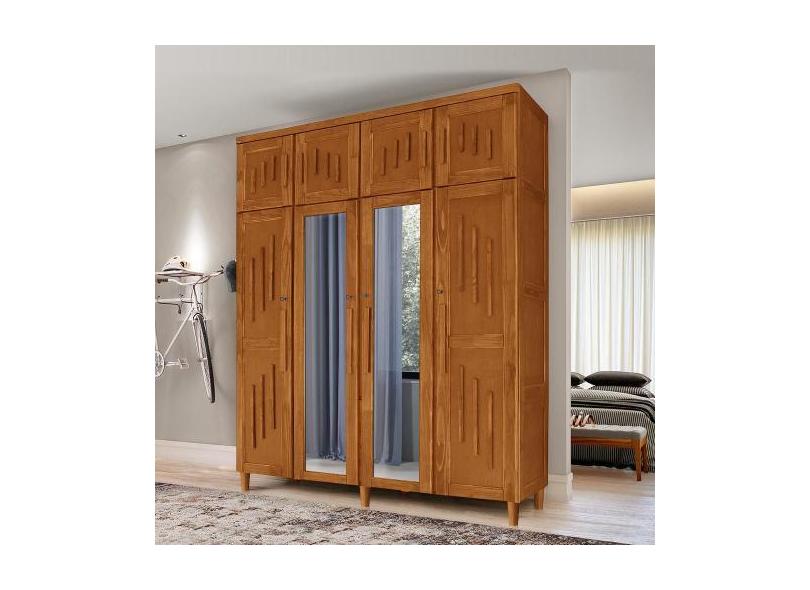 Guarda Roupa Casal Compacto Em Madeira Maciça Com Espelho Imbuia Maran
