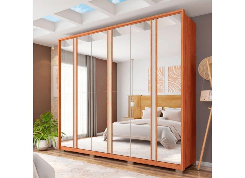 Guarda-Roupa Casal Gladiador 6 Portas 6 Gavetas Espelhado Freijo/Off White - Caemmun