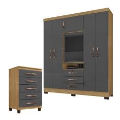 O menor preço encontrado no Brasil para Guarda Roupa Casal Imperial Com Cômoda Cannes 5 Gavetas Carvalho Ameri atualmente é R$ 1.053,81.