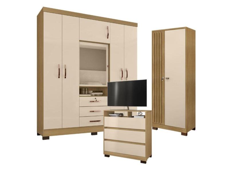 Guarda Roupa Casal Imperial com Cômoda Texas e Armário Multiuso Versatile Carvalho Americano Off White - Incorplac
