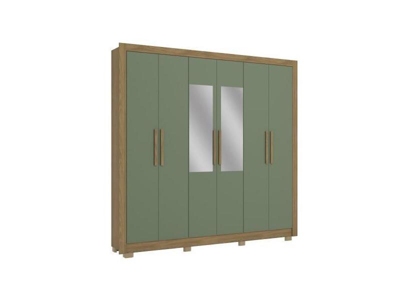 Guarda-Roupa Casal Kappesberg 6 Portas Com Espelho Marrom Verde Oliva
