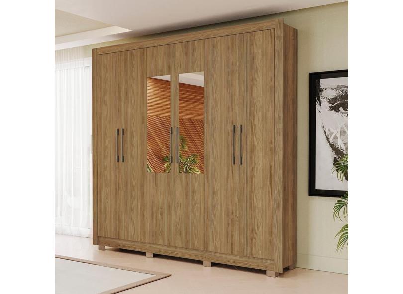 Guarda Roupa Casal Kappesberg com Pés e Espelho 6 Portas 3 Gavetas Nogueira