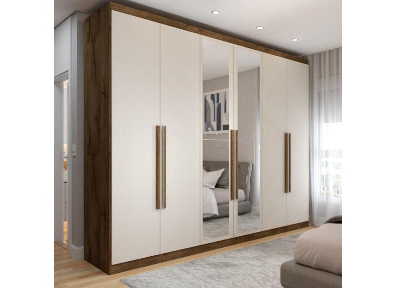 Guarda-Roupa Casal Madalena 6 Portas 6 Gavetas 100% Mdf com Espelho Brauna/Off White - Panorama Móveis
