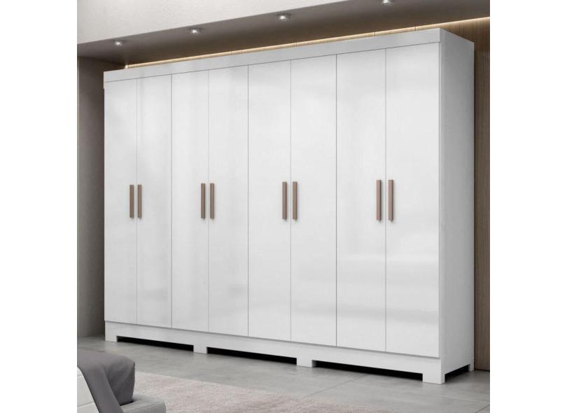 Guarda Roupa Casal Paris Com Pés 8 Portas Mdp Branco Brilho Maxel Branco
