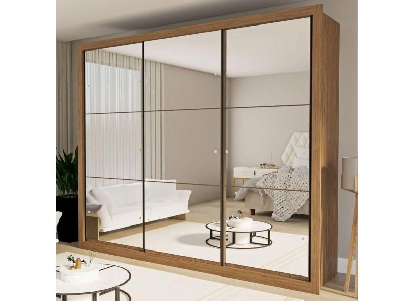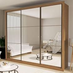 Guarda-Roupa Casal Ravena 3 Portas de Correr Espelhada Carvalho - Minastex