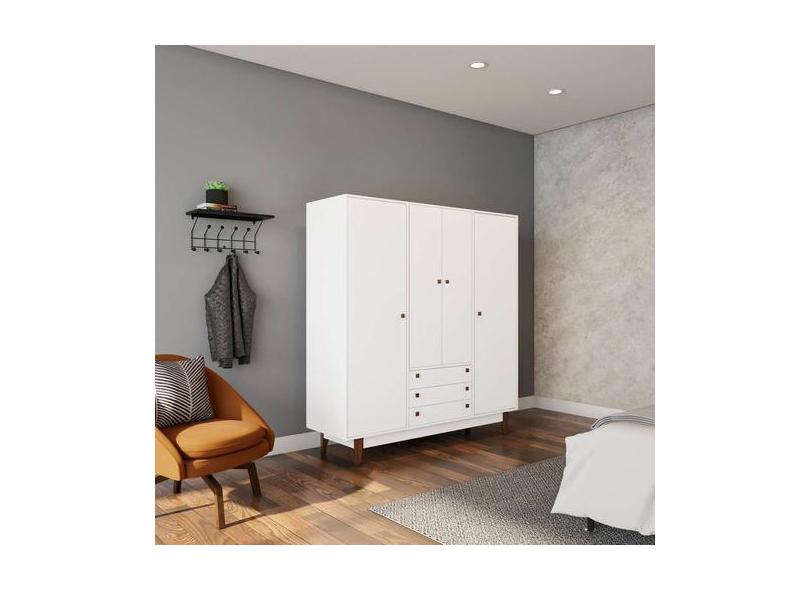 Guarda-Roupa Casal Recife 4 Pt 3 Gv Branco - Mobly