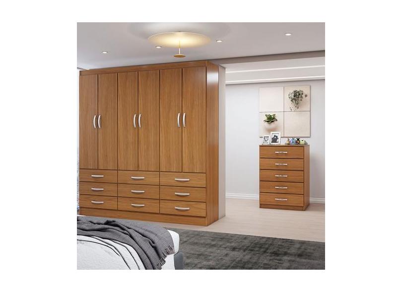 Guarda-Roupa Casal Stella 6 Portas 9 Gavetas com Cômoda 5 Gavetas Cina