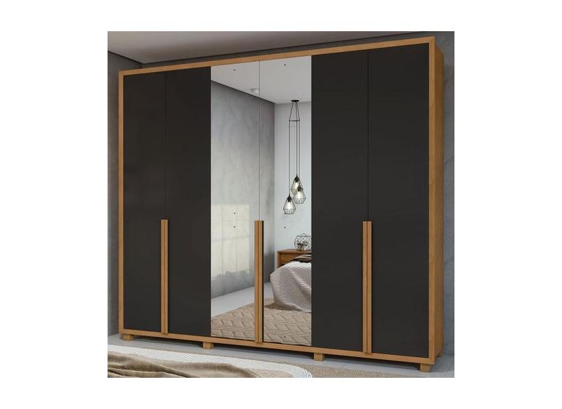 Guarda-Roupa Casal Unique 6 Portas 5 Gavetas Com Espelho Amêndoa/Preto