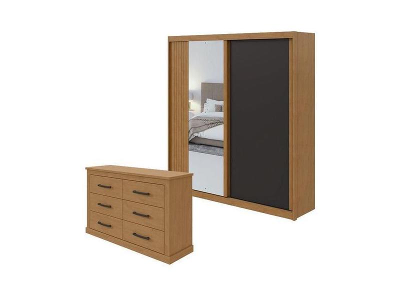Guarda Roupa Casal Velaris Com Espelho E Cômoda Rustic Amêndoa Clean P