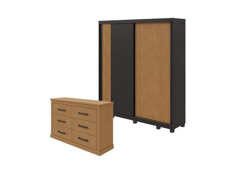 Guarda Roupa Casal Velaris Com Pés E Cômoda Rustic Preto Amêndoa Clean