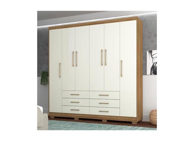 Guarda-roupa Casas Real com 6 Portas e 6 Gavetas Nature/Champanhe