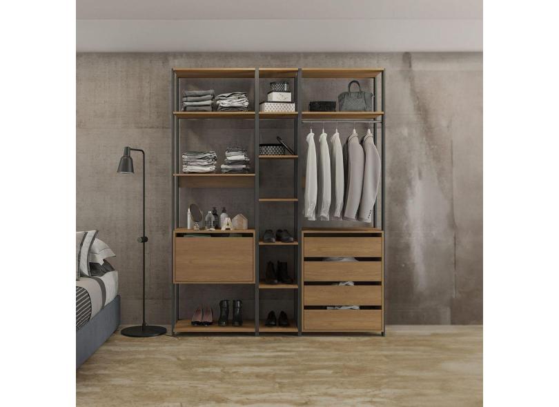 Guarda Roupa Closet Aberto 175x220Cm 3 Peças MDP Carvalho