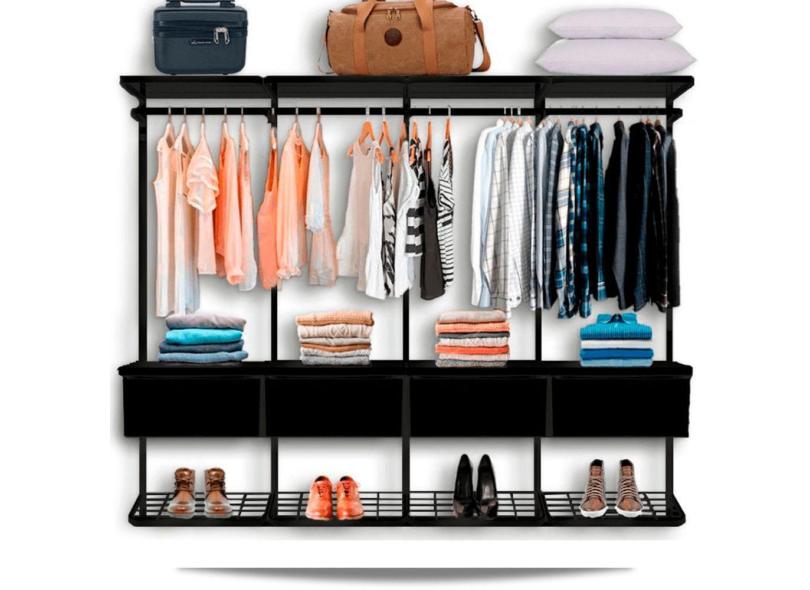 O menor preço encontrado no Brasil para Guarda Roupa Closet Aramado Modulado Gaveta MDF 2,50m PT atualmente é R$ 3.263,31.