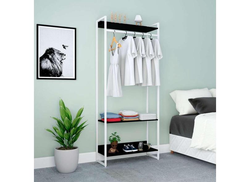 Guarda-Roupa Closet Studio Preto e Branco 187x80 cm