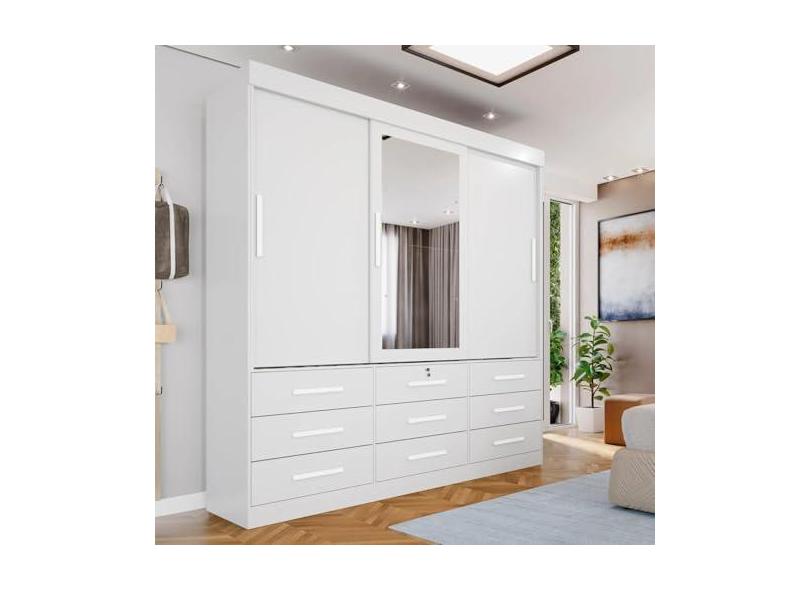 Guarda-roupa com Espelho e 9 Gavetas com Espelho Florença Espresso Móveis Espresso Branco