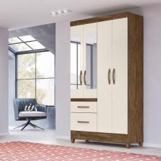 Guarda Roupa Com Espelho Solteiro 4 Portas 2 Gavetas Castanho Off Whit