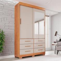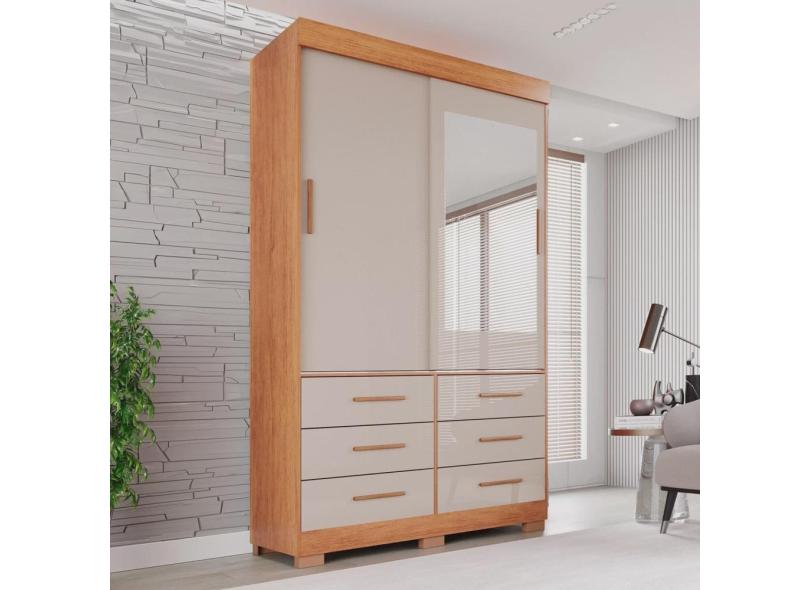 Guarda Roupa com Pés e Espelho 2 Portas 6 Gavetas Luana