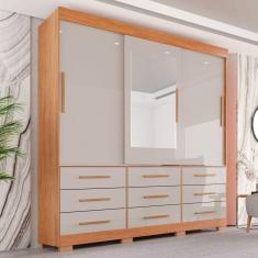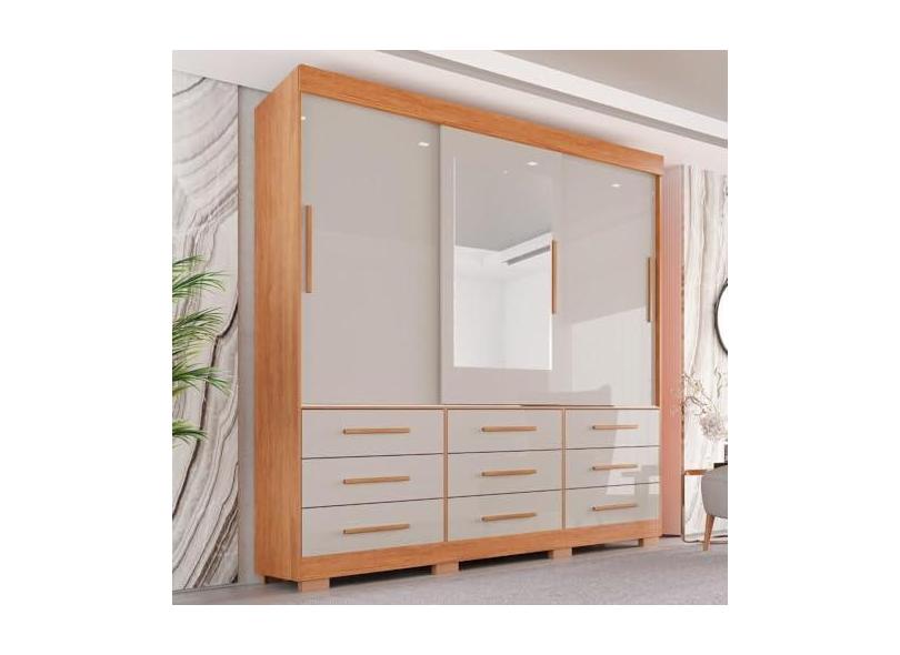 O menor preço encontrado no Brasil para Guarda-roupa com Pés e Espelho Casal 3 Portas 9 Gavetas Luana Cinamomo/off-white atualmente é R$ 918,74.