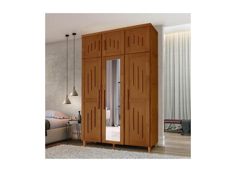 Guarda Roupa Compacto Em Madeira Maciça Com Espelho Castanho Maranhão