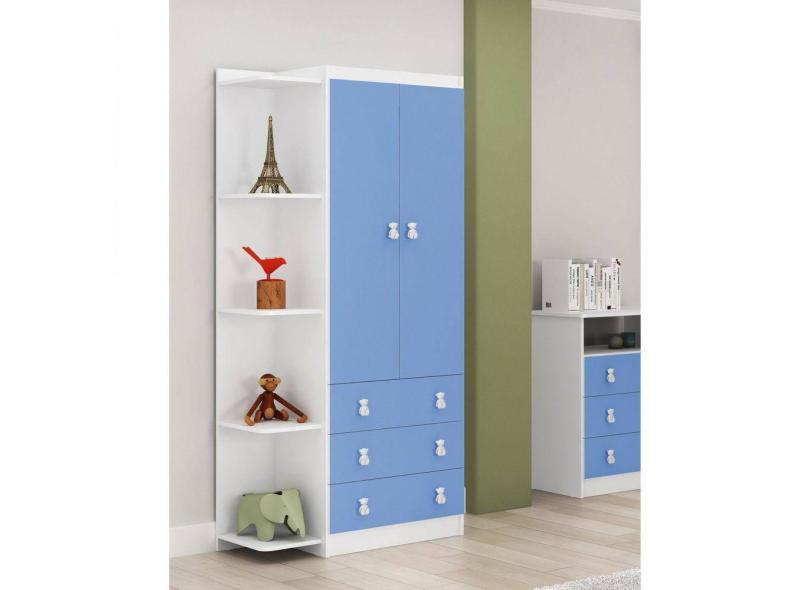 O menor preço encontrado no Brasil para Guarda Roupa de Bebê Arco-íris com Canto 2 Portas 3 Gavetas DJD Móveis Azul atualmente é R$ 642,20.
