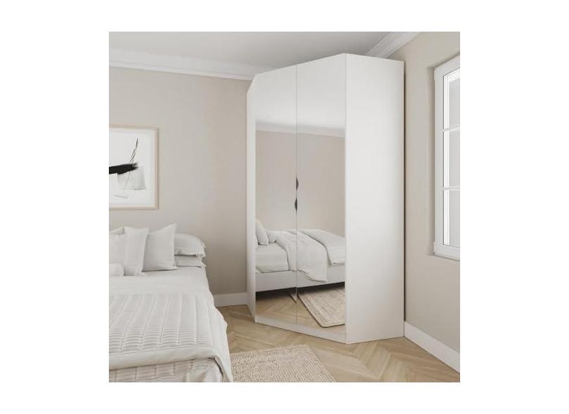 Guarda Roupa de Canto Closet com 6 Prateleiras e Portas de Espelho Modular Hera Cabecasa Madeiramade Branco Geada