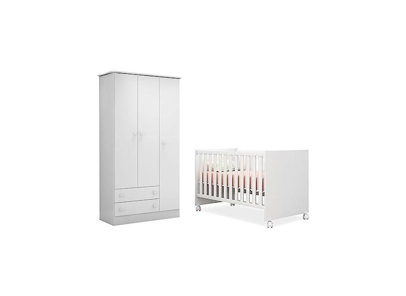 Guarda Roupa Doce Sonho e Berço Americano Branco Qmovi
