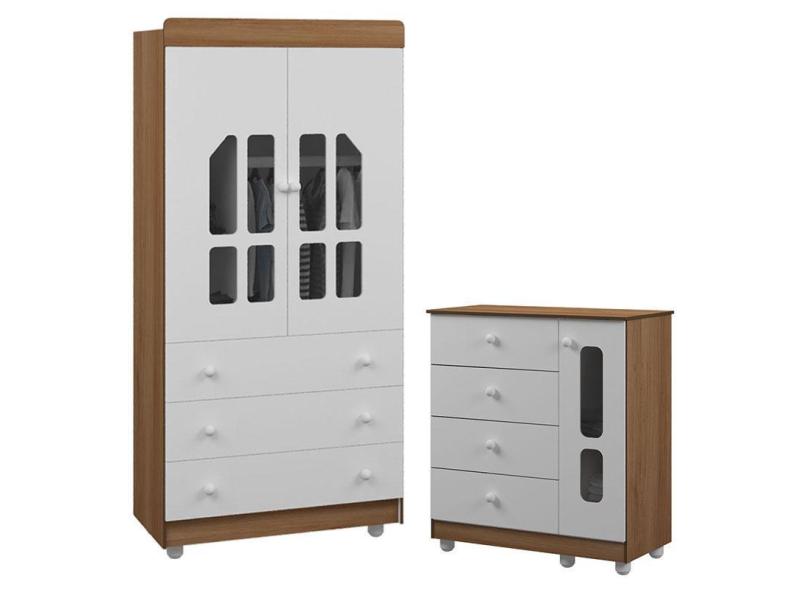 Guarda Roupa e Cômoda Infantil 2 Portas Katatau Branco Brilho Mezzo Castani – Reller