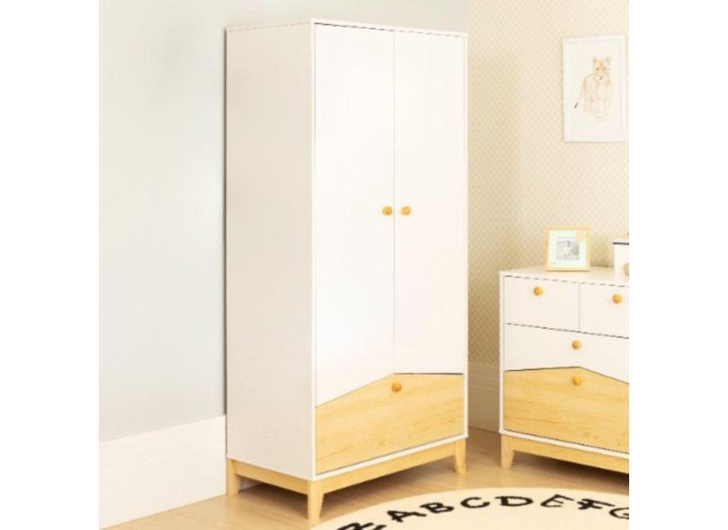 Guarda Roupa Infantil 2 Portas 1 Gaveta Safari Divicar Móveis Branco/Marrom Ecológico