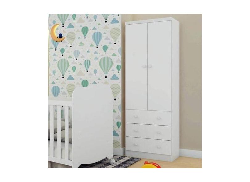 Guarda Roupa Infantil 2 Portas E 3 Gavetas 100% Mdf Smim Branco Brilho