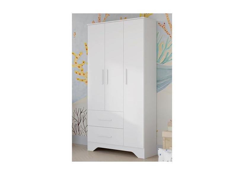 Guarda-roupa Infantil 3 Portas e 2 Gavetas 100% Mdf Liam Branco Brilho